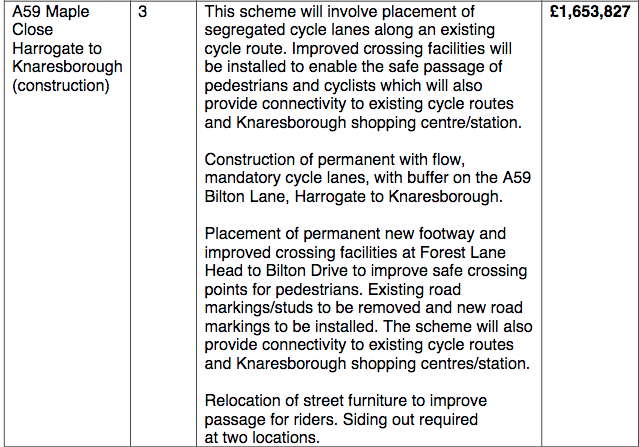 - £1,653,827 for A59 Knaresborough Road (extra bid to competitive pot)