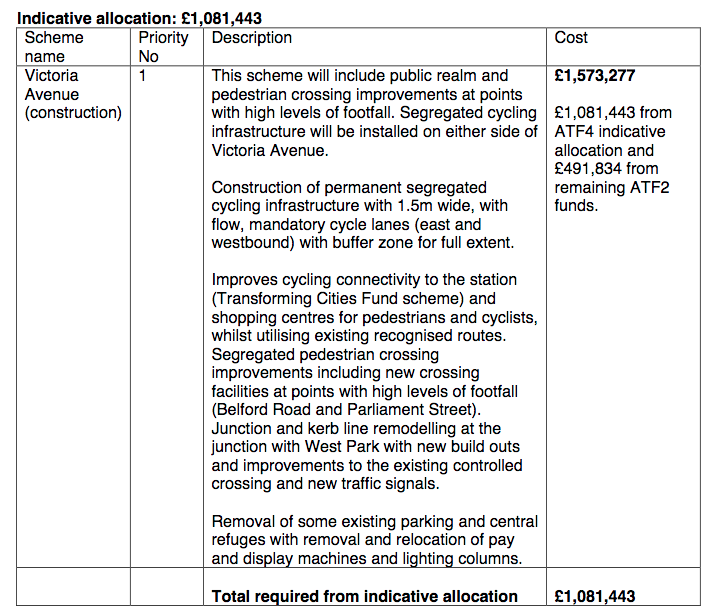There are to be dedicated cycle tracks either side of Victoria Avenue, an improved pedestrian crossing at the junction with Belford Road, and remodelling of the Victoria Avenue/West Park junction.