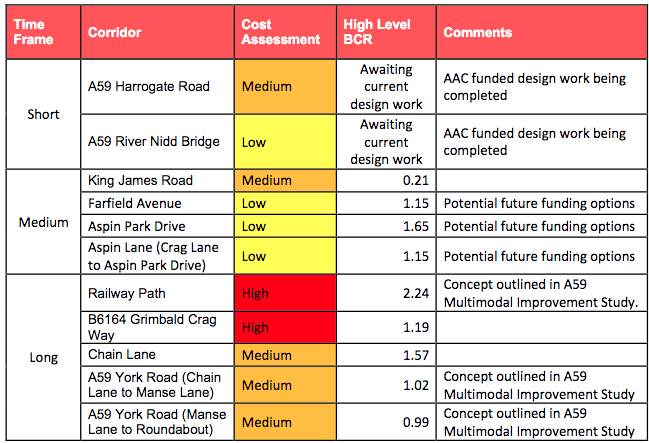 The short-term priorities are at High Bridge, Knaresborough. There is a missing link for about 300m there before the A59 cycle path to Harrogate starts, and that issue needs to be resolved.